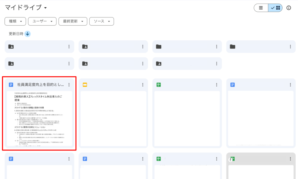 ※ 出力した「Googleドキュメント」は、マイドライブに自動で格納されます。