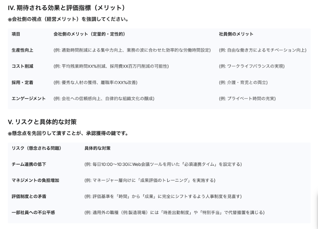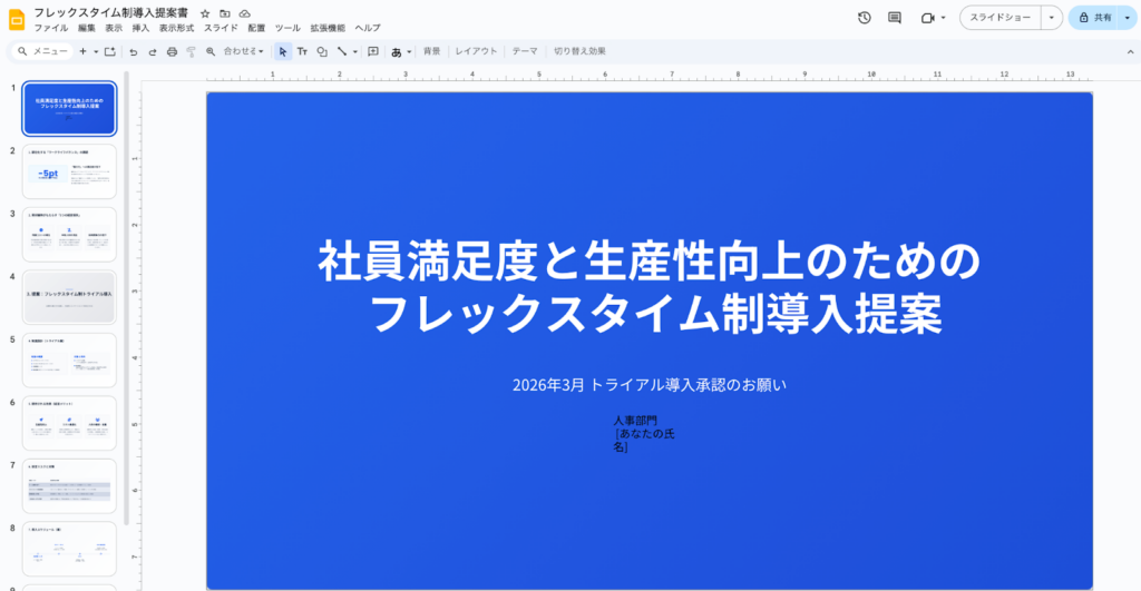 「フレックスタイム制」の導入を役員に提案する資料を作成したいです。