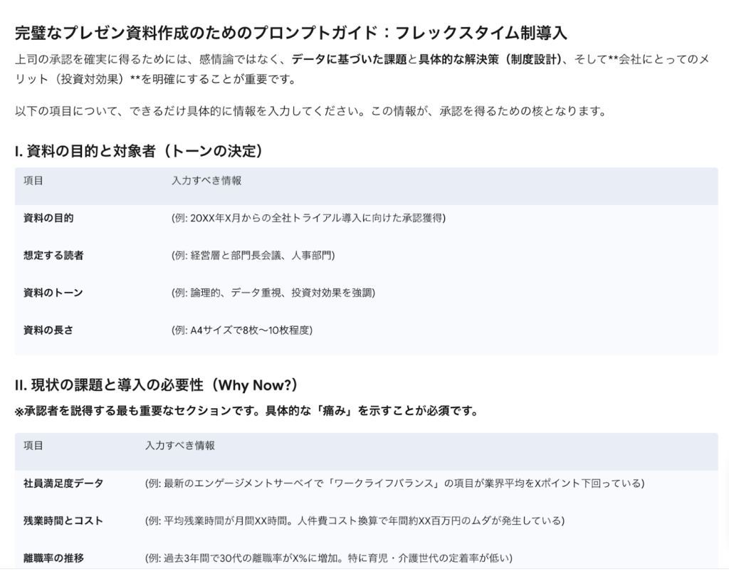 「こんなプロンプトを投げてくれると完璧な資料を作れるで!!」