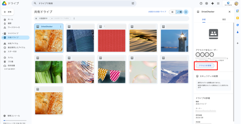 共有ドライブメンバーの確認を簡単に行う方法は?